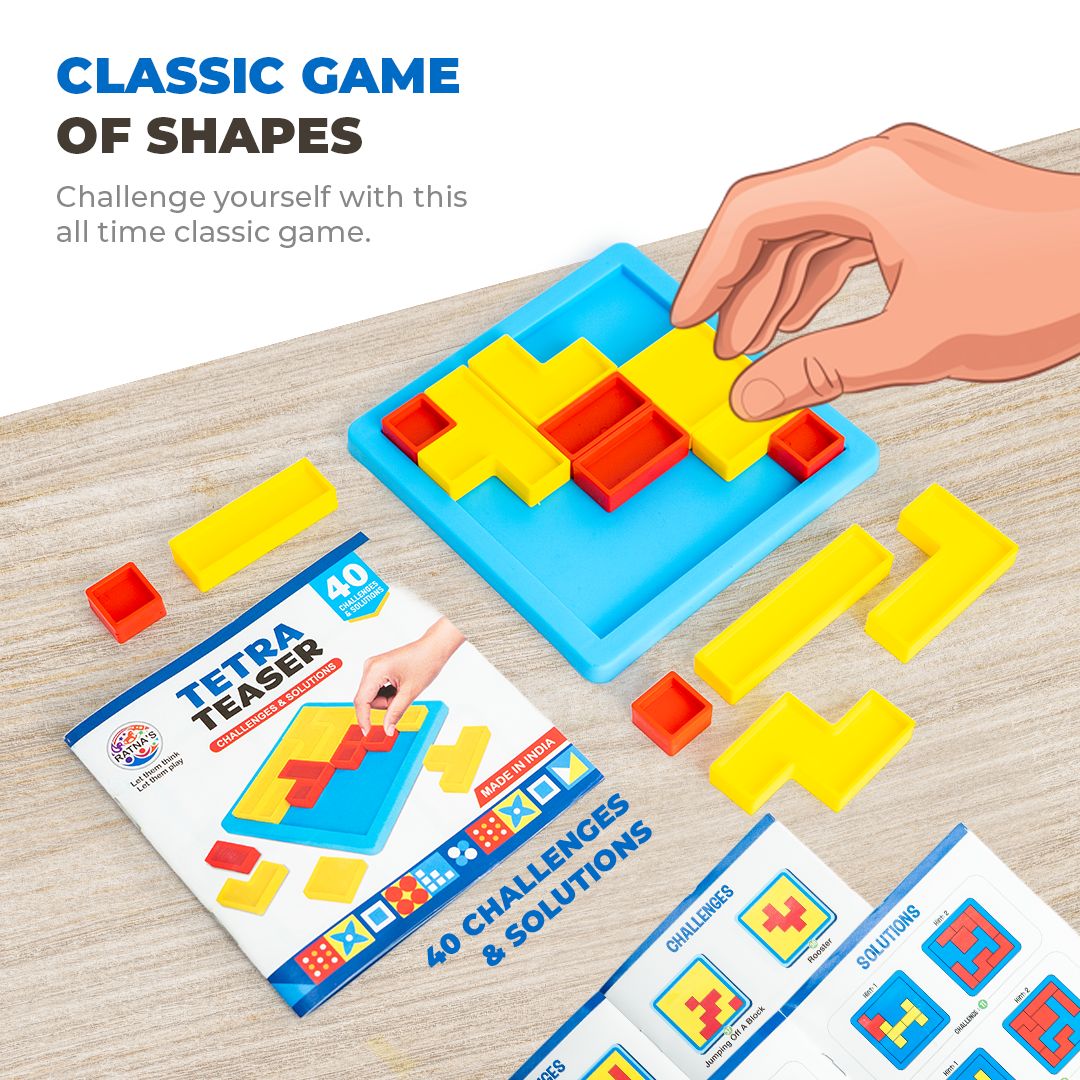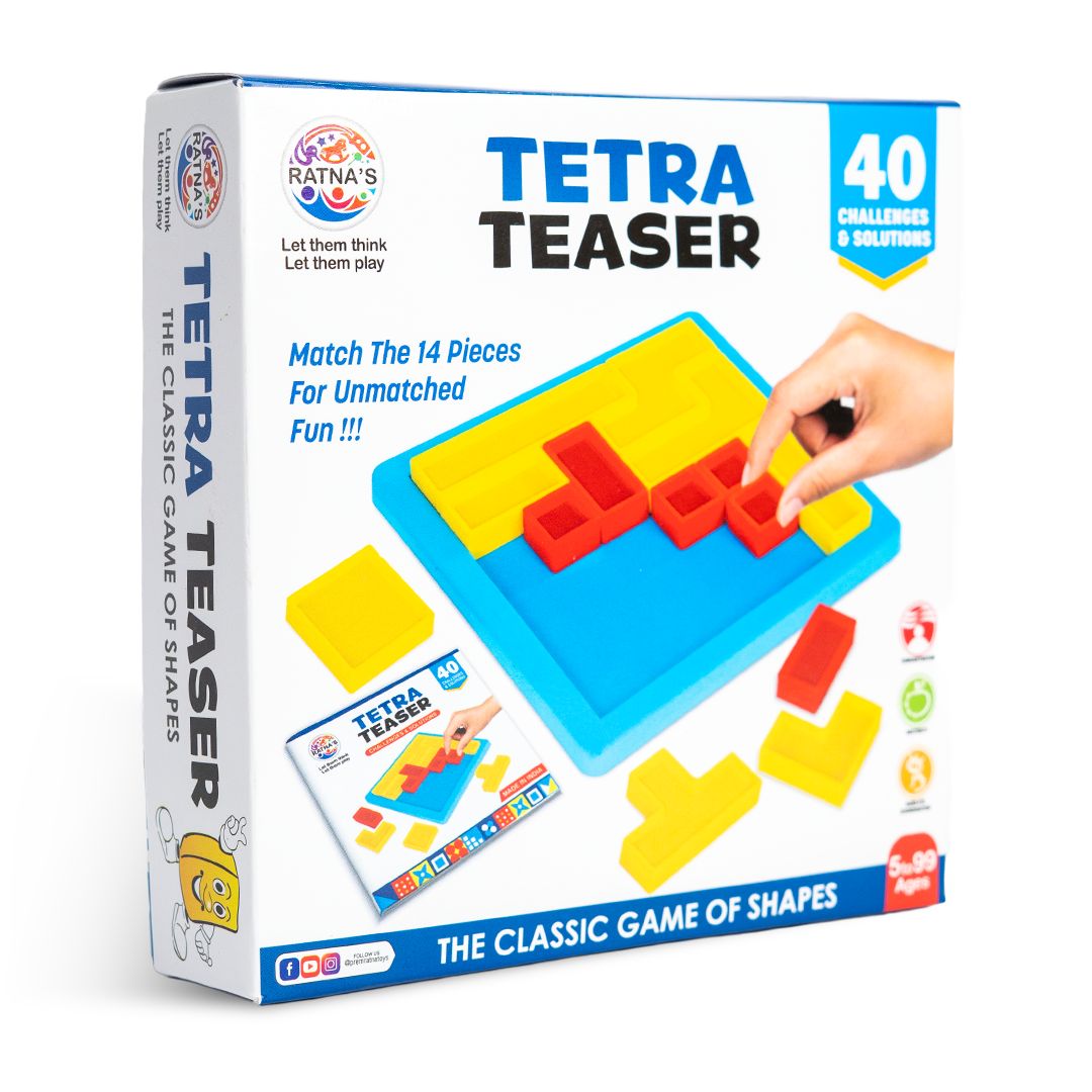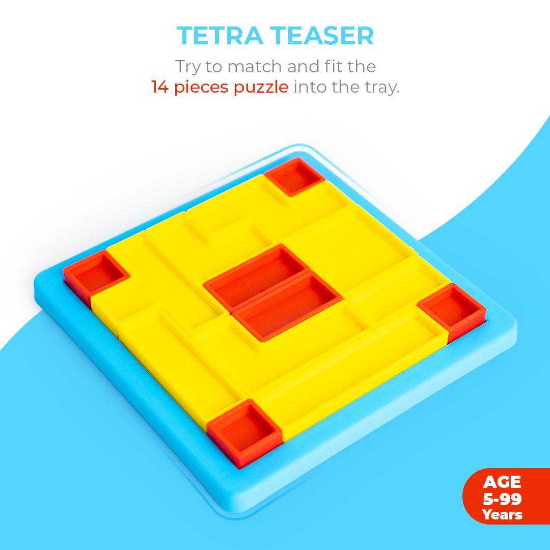 Crafted to stimulate curious minds and nurture essential developmental skills, the Tetra Teaser is a delightful blend of logic, color, and challenge. Featuring 14 uniquely shaped pieces in a vibrant red-and-yellow palette, this compact puzzle fits perfectly into a 12 cm square tray, creating endless possibilities for problem-solving fun.